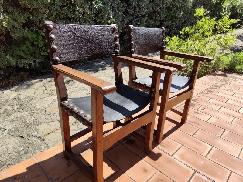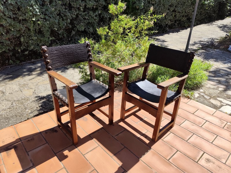 fauteuil cuir chêne vintage 1920